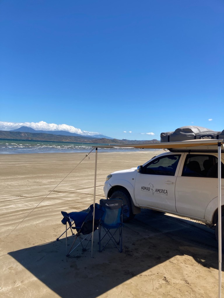 Die Tour in den Norden hat doch etwas länger gedauert als erwartet. An den vielen schönen Plätzen unterwegs haben wir viel Zeit vertrödelt, also mussten wir unterwegs übernachten. Die kleine Stadt Jaco direkt am Meer lag günstig, allerdings voller Touristen. Und so hatten wir richtige Probleme, ein vernünftiges Hotel zu finden. Nach einem guten Abendessen hat es dann doch geklappt. Leider lag unser Balkon ca. 5 m über dem Partypool – oh je, Tourismus wie wir ihn eigentlich nicht erleben wollten. Gestärkt mit einem ordentlichen Frühstück ging es weiter. Oben angekommen, hatten wir auch erst Schwierigkeiten einen ordentlichen Stellplatz zu finden, hatten dann aber doch Glück.