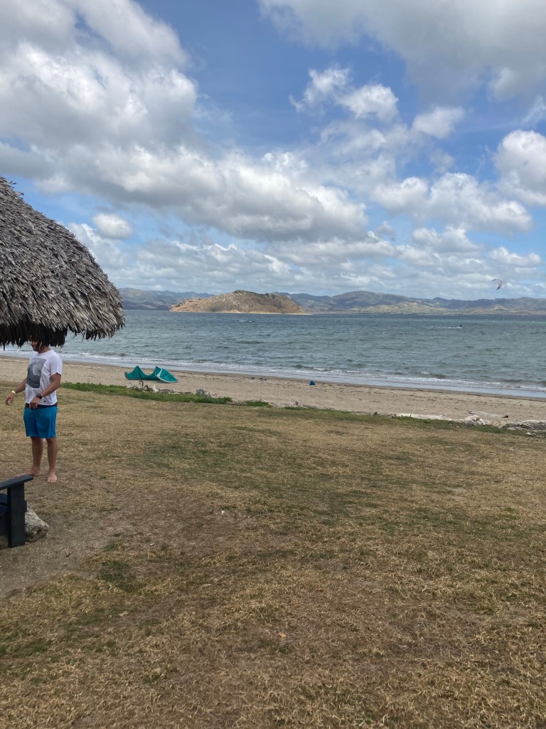 Das Auto lässt weiter auf sich warten. Ist an diesem schönen Platz aber erträglich. Unsere Cabana liegt 100 m vom Strand entfernt, die Sonne scheint, was braucht man mehr?