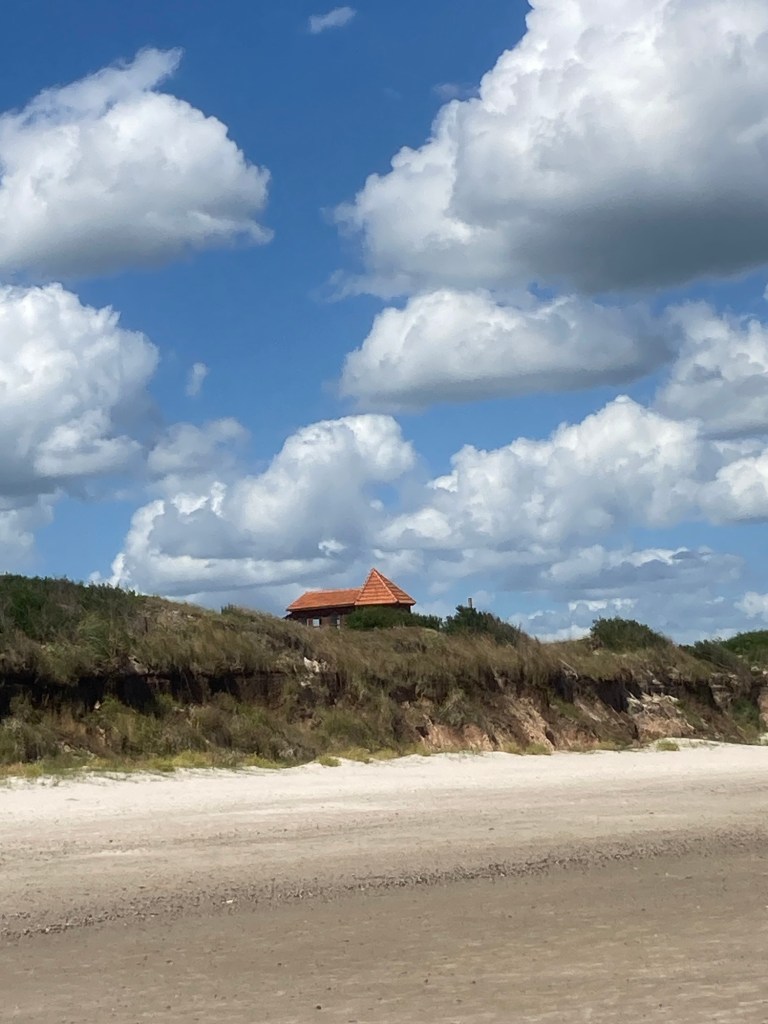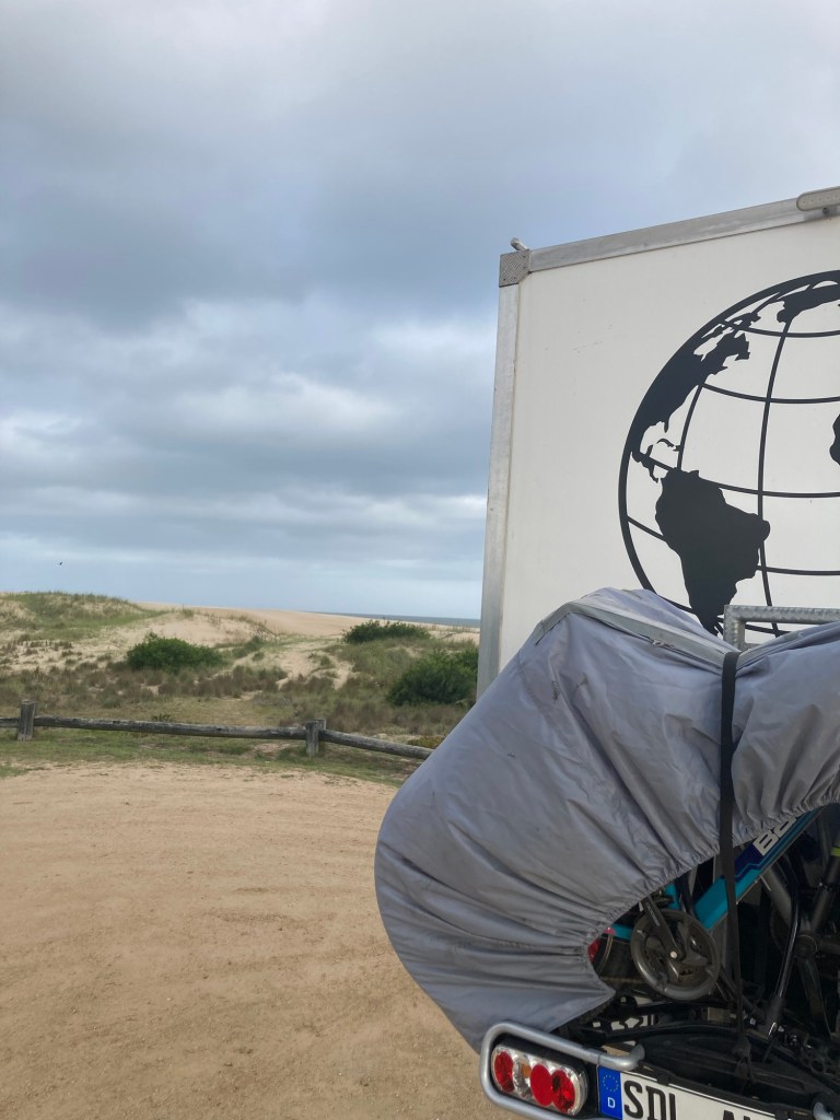 Die Ankunft des Schiffes verspätet sich um eine Woche. Also müssen wir länger auf unser Auto warten. Nach fünf Tagen in Montevideo, mit vielen tollen Erlebnissen, wollen wir aber ans Meer. Hier haben wir einen schönen Bungalow angemietet. Gibt es einen schöneren Platz zum warten?