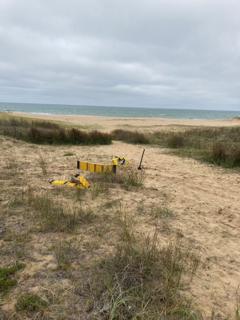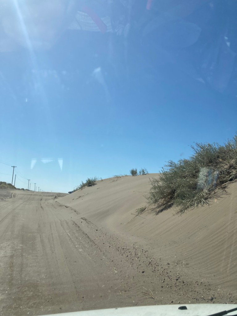 Manchmal wird Mut nicht belohnt. Einen tollen Stellplatz in den Dünen und dazu noch ganz allein. Ich hätte nicht geglaubt das der 4×4 versagt. Wir haben uns total festgefahren. Nach ca. 2 Stunden harter Arbeit mit der Schippe und den Sandblechen haben wir es aber geschafft uns zu befreien. Vor Ärger haben wir vergessen Fotos zu machen.