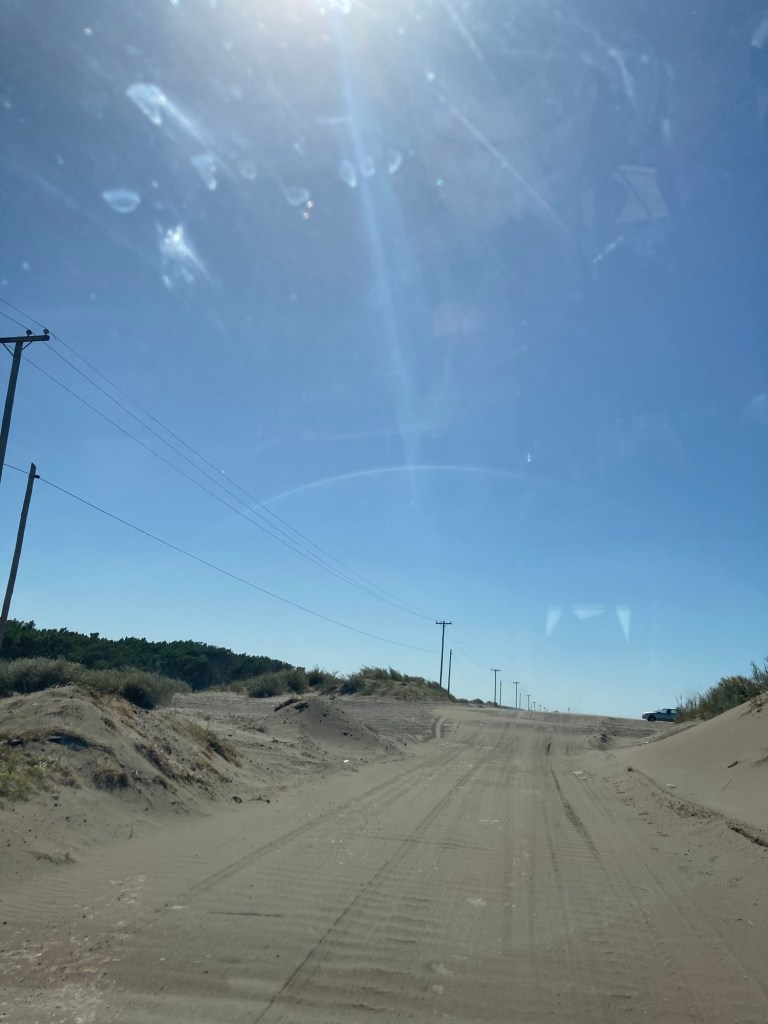 kleines Dorfkleine und einzige Gaststätte mit Livemusik einsamer Strandder Wind als ständiger BegleiterStrandzufahrt über die Dünen, am Abend war der Weg schon wieder zugeweht
