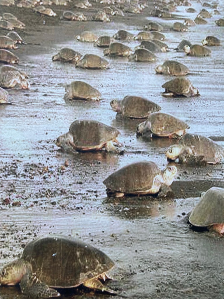 Unseren erst einmal letzten Tag am Meer nutzten wir für Exkursionen. Wir haben das Glück, genau zur richtigen Zeit am richtigen Ort zu sein. Morgens um 5:30 Uhr, kurz bevor die Sonne scheint, schlüpfen die kleinen Schildkröten am Strand. Auf dem beschwerlichen Weg vom Strand bis ins Meer werden schon ca. 80 % der jungen Kröten von Vögeln gefressen. Nach vielen Jahren kehren sie dann wieder ausgewachsen an den gleichen Strand zurück, um ihre Eier abzulegen. Abends, wenn die Flut kommt, verbuddeln sie ihre Eier am Strand.