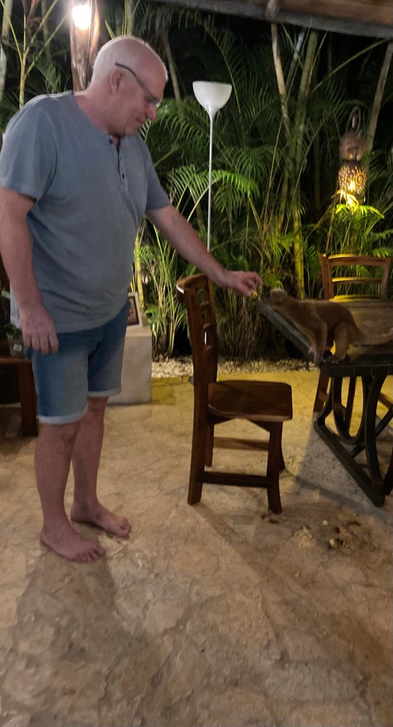An letzten Abend in der Lodge haben die Gastgeber extra die Bar für uns geöffnet. Wie auf Bestellung hatten wir auch noch mal einen besonderen Gast. Die Zeit hier war wunderschön, aber jetzt zieht es uns weiter. Wir wollen Land und Leute kennenlernen. Bei den Temperaturen suchen wir uns wieder einen schönen Stellplatz am Meer.